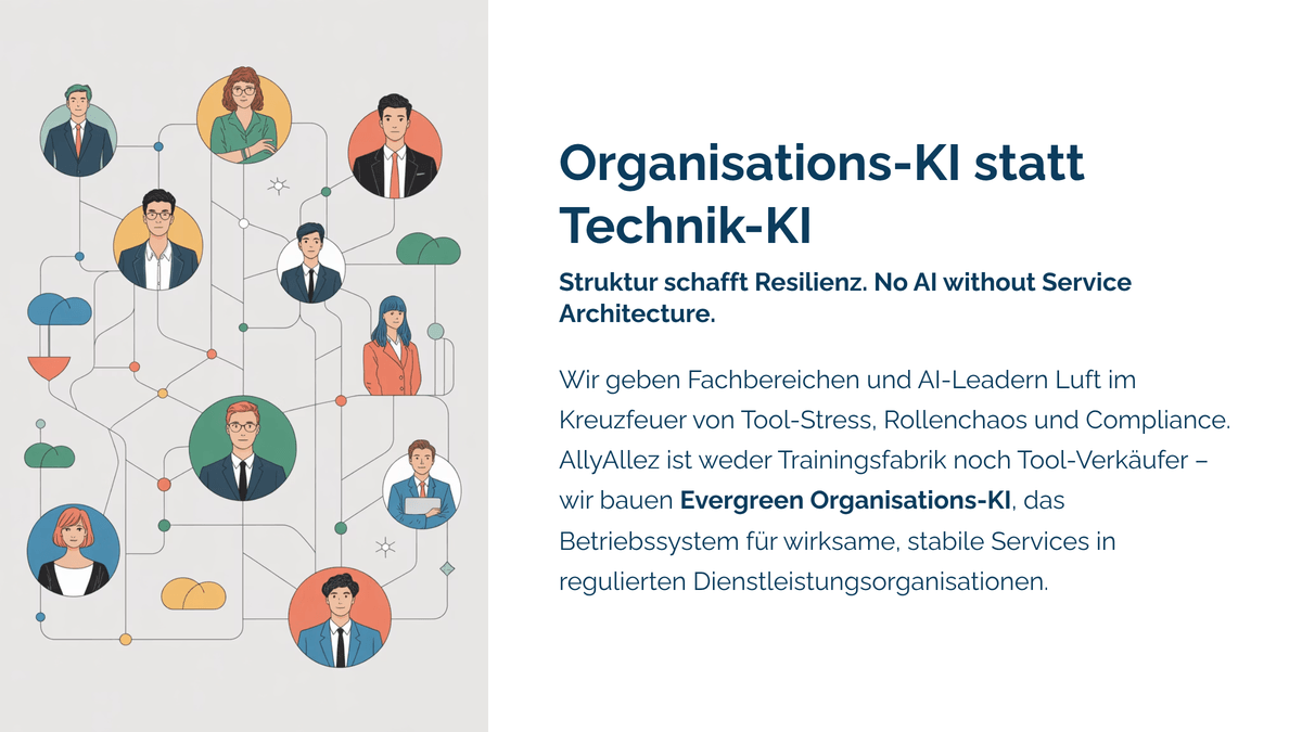 © AllyAllez 2025 – No AI without Service Architecture. | AllyAllez GmbH, Feusisberg (Schweiz/Switzerland/Suisse) | AllyAllez – Service-zentrierte KI-Transformation für regulierte Organisationen.